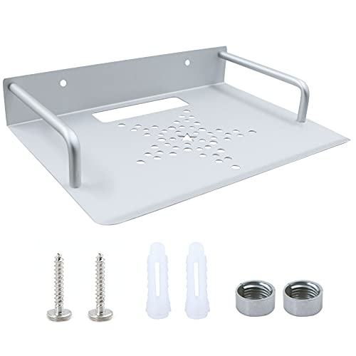Väggfäste router bricka repeater-rack – väggmonterat silverförvaringsfack av aluminium, horisontell placering vägghållare, väggmonteringsserver ventilerad lagring, liten nätverkshylla, 23 x 16 cm