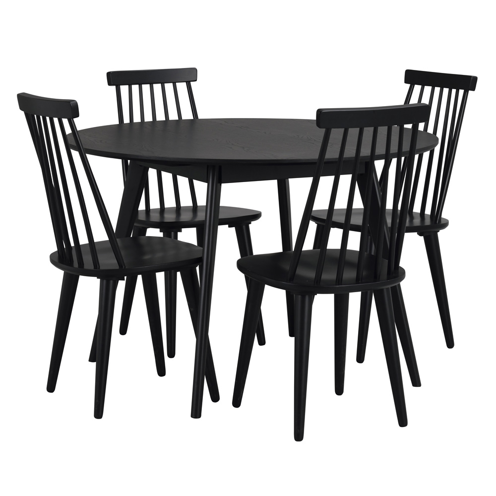 Rowico Yumi/Lotta matgrupp med 4 stolar svart