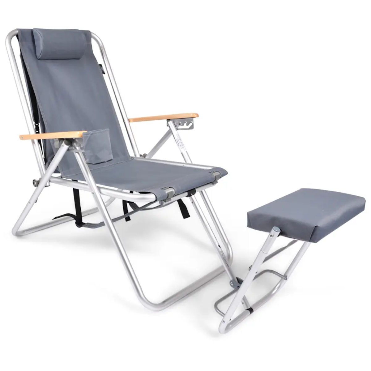 Fritab Roxy friluftsstol senior med ryggsäck och fotpall tyg grå extra hög