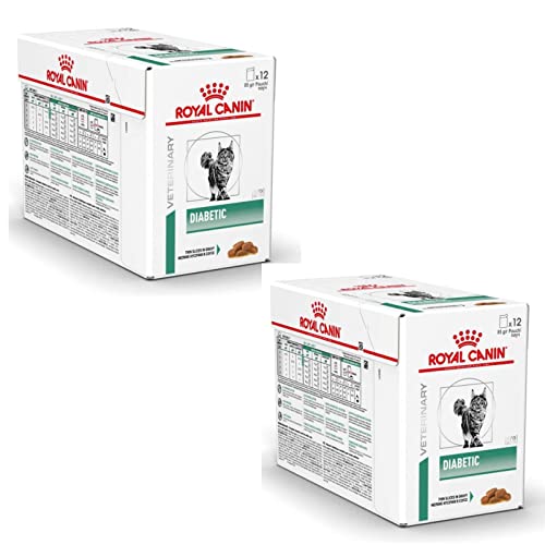 Royal Canin Veterinary Diabetic | Dubbelförpackning | 2 x 12 x 85 g | Full dietmat för katter | För att reglera ditt glukosintag | Med fina bitar i sås