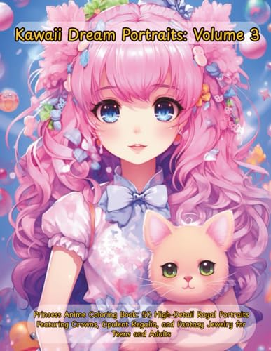 Kawaii Dream Portraits: Volume 3: Princess Anime Coloring Book: 50 High-Detail Royal Portraits Featuring Crowns, Opulent Regalia, and Fantasy Jewelry for Teens and Adults
