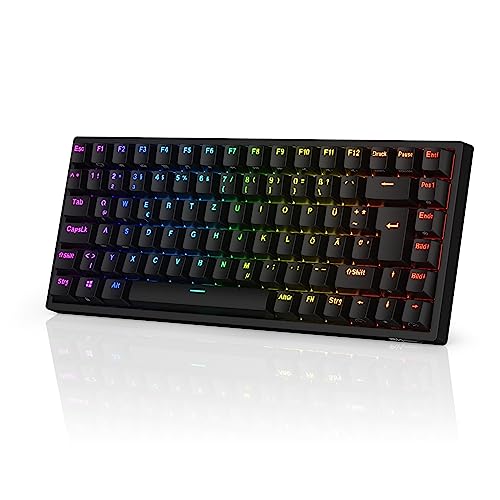 RK ROYAL KLUDGE RK84-DE 75% speltangentbord, 85 tangenter, kompakt Bluetooth-mekaniskt tangentbord, blå brytare, RGB-bakgrundsbelysning, 2,4 GHz för Mac & Win, QWERTZ