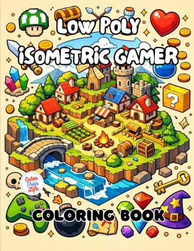 Low Poly Isometric Gamer Coloring Book: 40 Images | 8.5x11 | RPG Landscapes, Retro Graphics, Video Game Aesthetics | Mindful Coloring and Stress Relief | For Kids, Teens, Adults, and Seniors