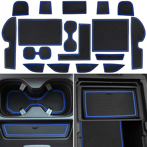LOCOY Center Console Liner for Honda CRV Accessories 2023 2024 2025, for CR-V Cup Holder Mat, Door Slot Pad, Coaster Trim, Non-Slip Dust Interior, Custom Rubber Decoration Insert (17pcs, Blue Trims)