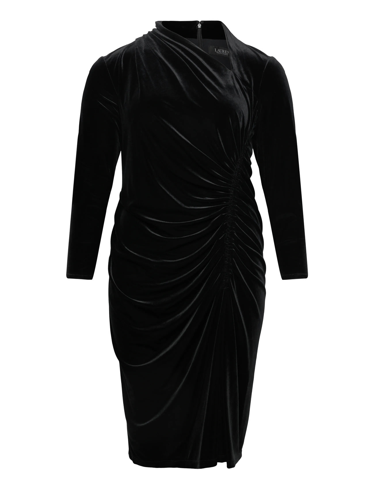 Lauren Women Ruched Velvet Asymmetrical Dress Svart
