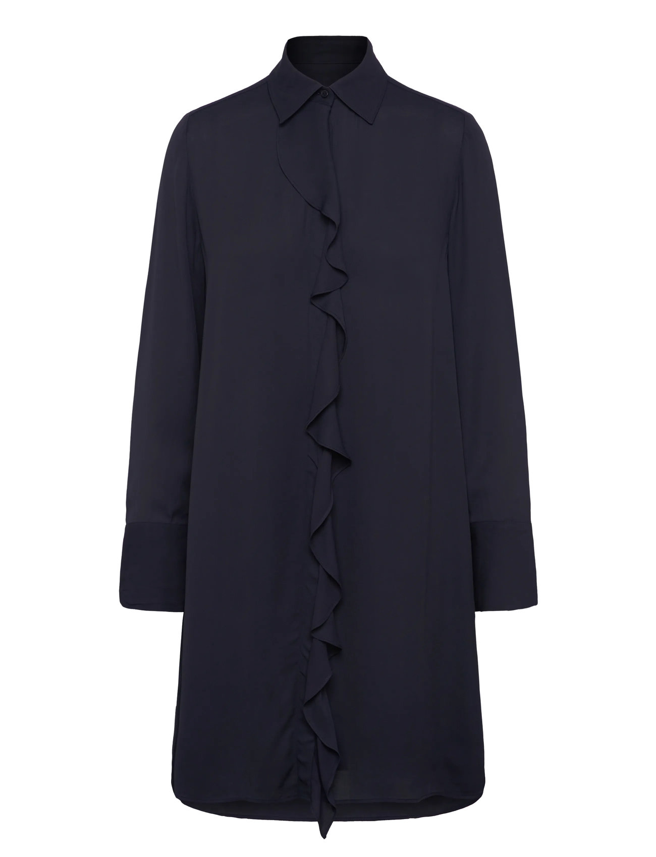 Crepe Viscose Ruffle Shirt Dress Navy GANT
