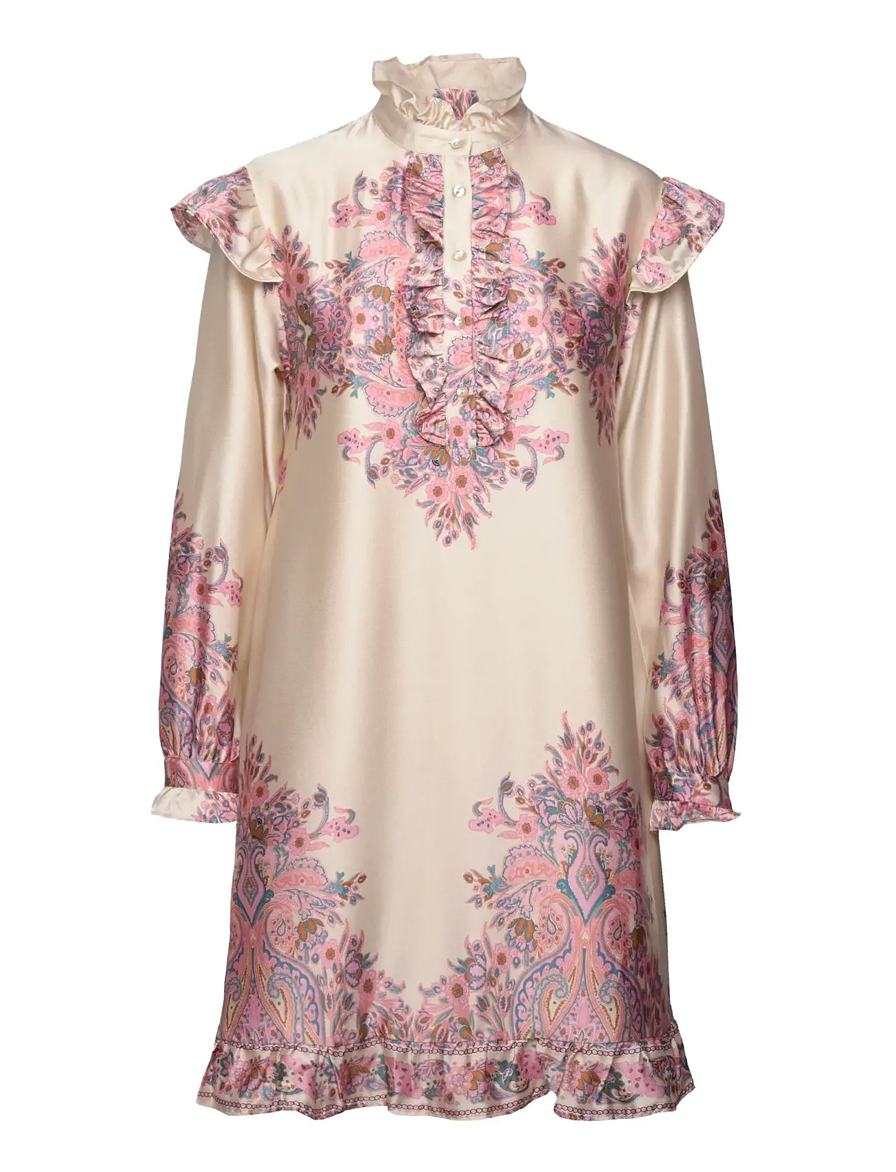 Vibonja L/S Ruffle Short Dress Patterned Vila