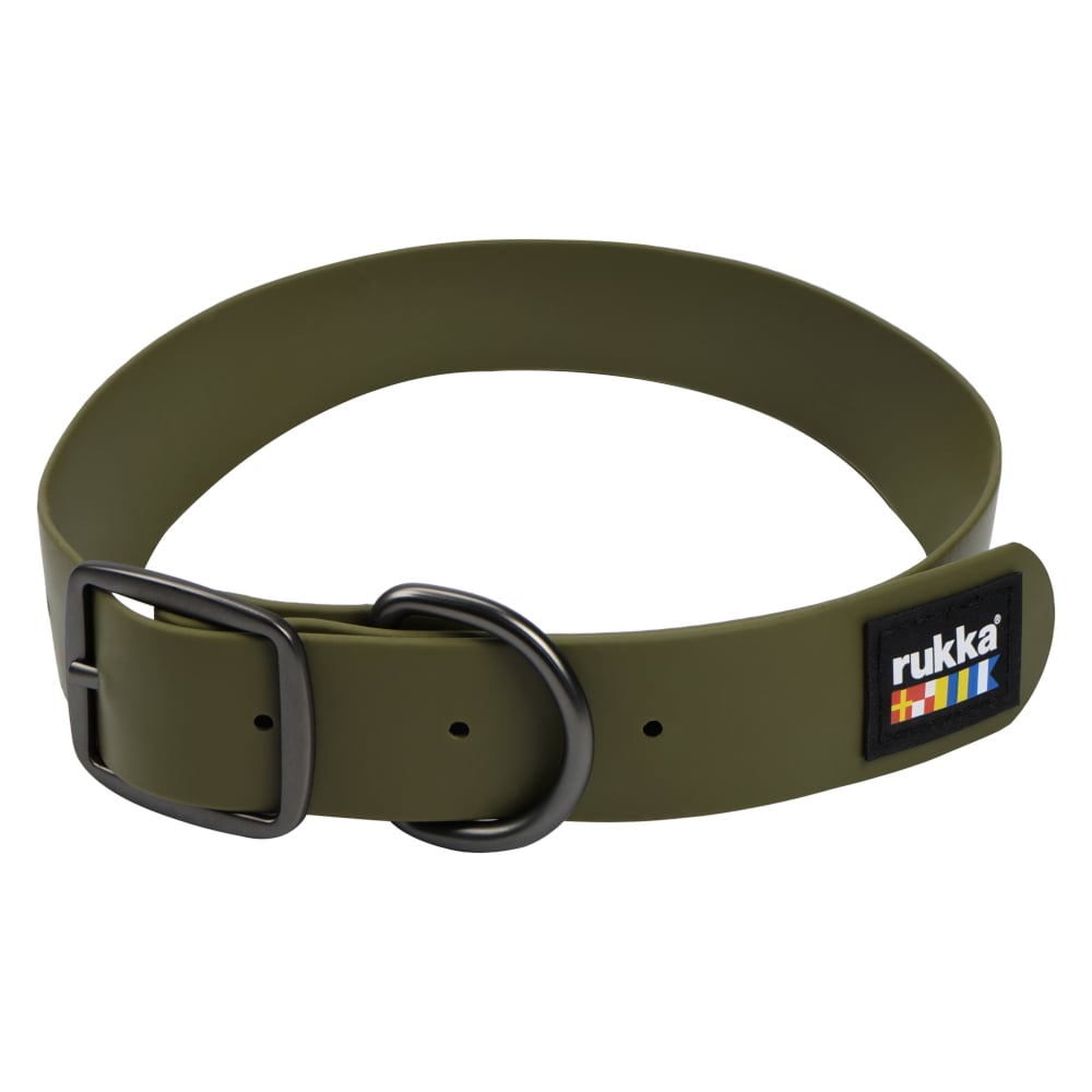 Rukka Biodipro halsband, oliv - Storlek S: 28 - 35 cm halsomkrets, 15 mm brett