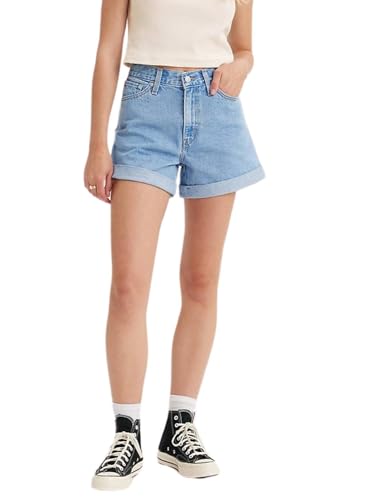 LEVIS Dam rullade 80S MOM shorts MED indigo-platt finish, Tillbaka till blå, 25