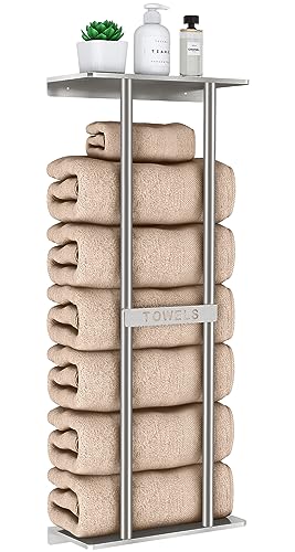 STWWO Handdukshållare, väggmonterad, stor handdukshylla för badrum, 76 cm, gästhanddukshållare med hylla, förvaring av rullade handdukar, av metall
