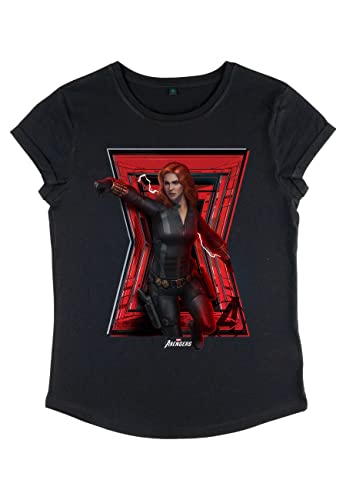 Marvel Widow Maker kvinnors rullade ärmar T-shirt, svart, S