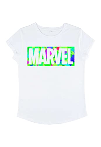 Marvel Kvinnors färgglada rullade ärmar T-shirt, vit, M, Vit, M