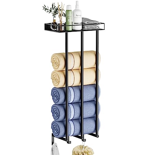 STWWO Handduksförvaring för litet badrum, handduksställ för badrum kan rymma 4 stora handdukar, 55,8 cm vägghandduksställ för rullade handdukar vikta badhanddukar, svart