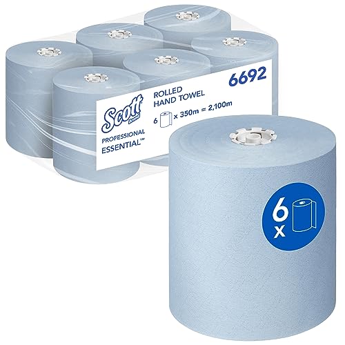 Scott väsentliga rullade handdukar 6692 – blå pappershanddukar – 6 x 350 m pappershanddukrullar (2 100 m totalt)