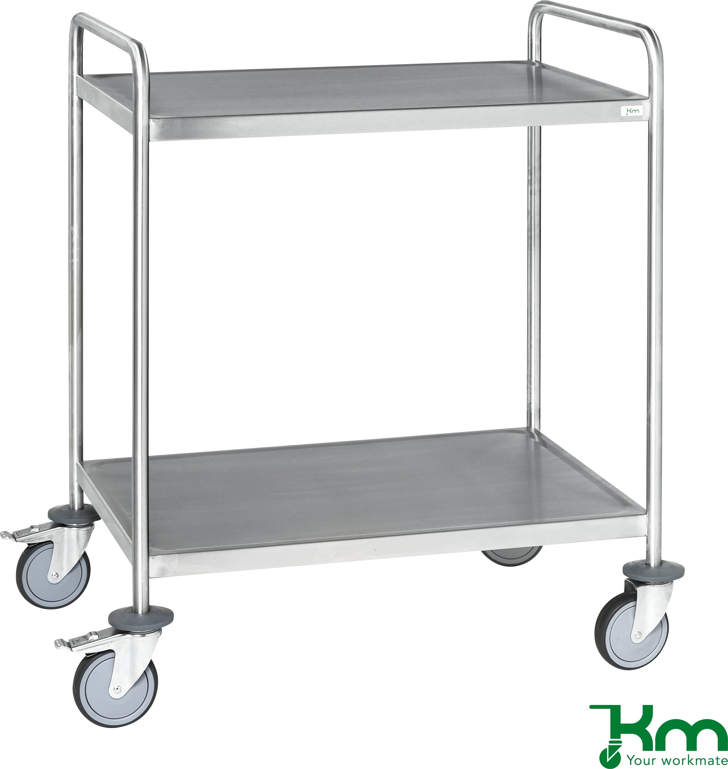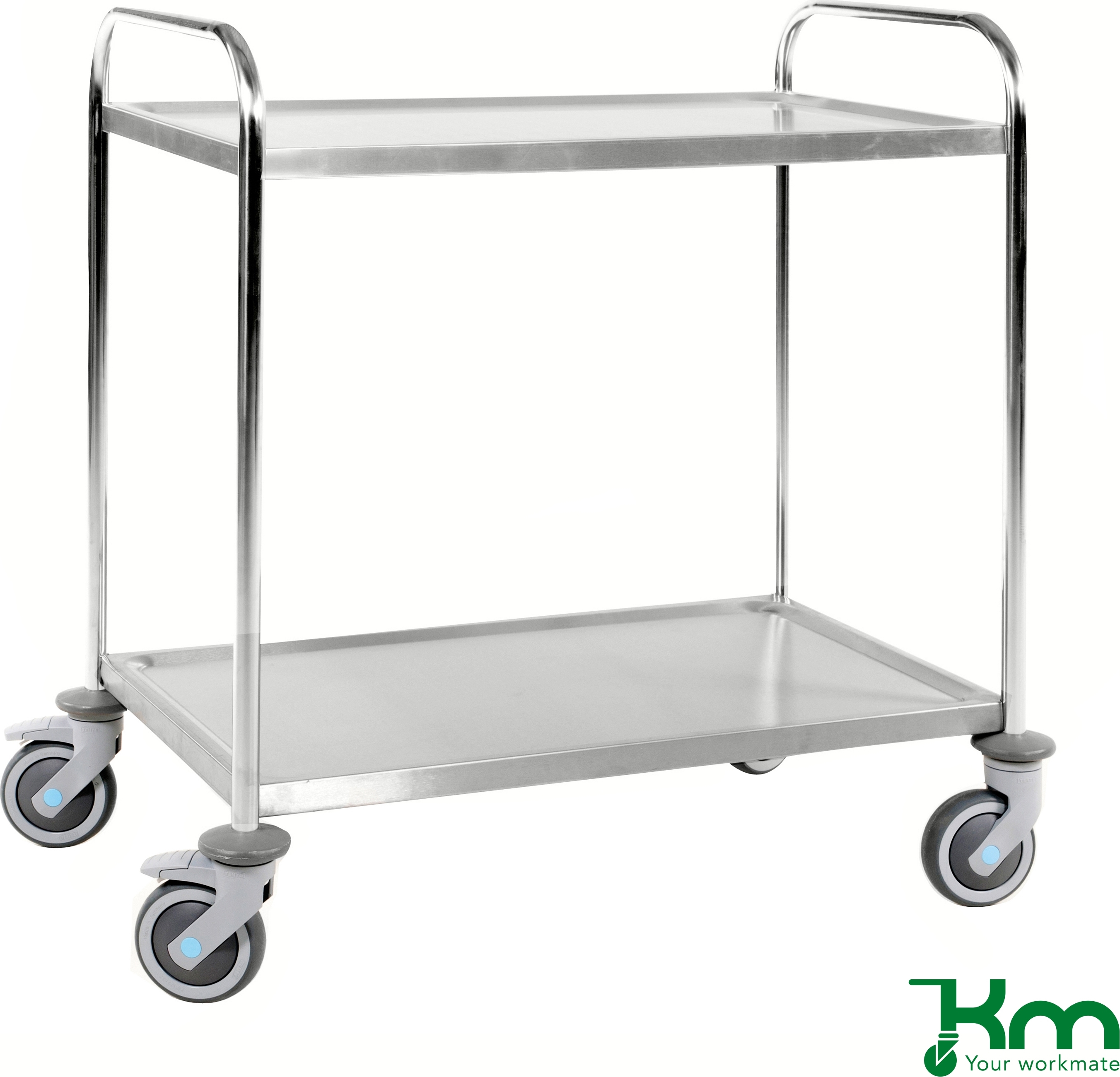 Rostfritt rullbord 2 plan, 910x590x965mm, 100kg, broms, KM60354-S