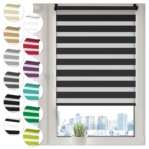Sonello Dubbel rullgardin utan borrning for att klämma svart 110cm x 100cm (bredd x längd) Klemmfix dinmed Dubbelgardiner solskyddsrullgardin med klemfäste fönsterrullgardin för fönster & dörrar