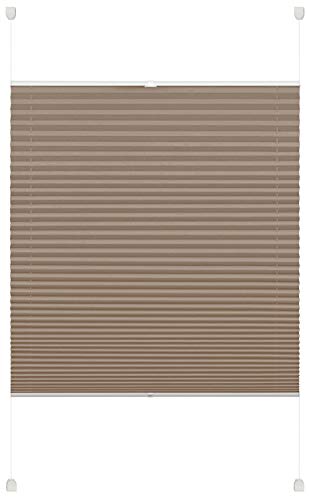 Deco Company plisségardin att klämma fast, ogenomskinlig plisserad rullgardin, Alla monteringsdelar ingår, EASYFIX plisségardin fastspänd med 2 manöverskenor, taupe, 80 x 220 cm (BxH)