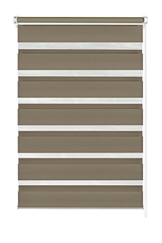 GARDINIA dubbel rullgardin för att klämma eller limma fast, Dubbel rullgardin/gardin med sidodrag, Omväxlande genomskinliga och ogenomskinliga ränder, Monteringssats ingår, Mocka, 90 x 220 cm (BxH)