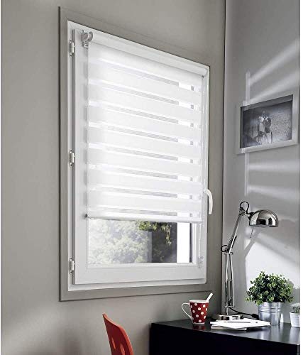 Estika dubbel rullgardin Klemmfix utan borrning - 90 cm x 120 cm - vit - 27 tygfärger, dag- och nattduo rullgardin, för fönster utan borrning, insynsskydd för fönster