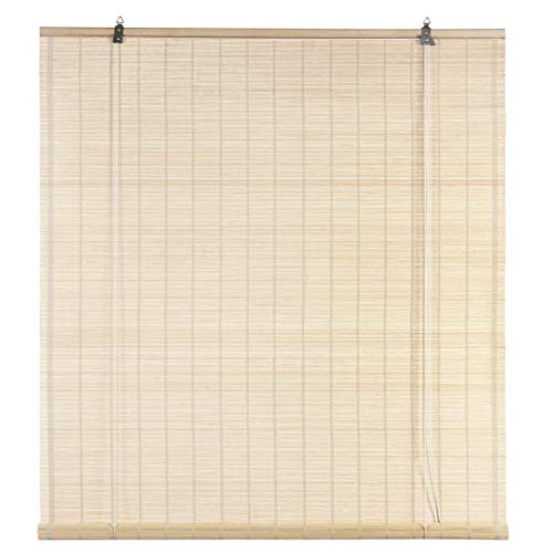 Naturlig rullgardin i bambu, romersk persienn, bambupersienn, träpersienner med snöre, gardin, rullgardin med ljusfilter, mörkläggningsrullgardiner, insynsskydd, för tehus/restaurang/trädgård/balkong (90 x 180 cm/(36 x 71 tum))