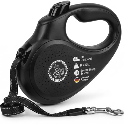 HUND ÄR KUNG rullkoppel hundkoppel 8 m för små och stora hundar | Högkvalitativt utdragbart hundkoppel med bekvämt handtag | robust utdragbart koppel | upp till 50 kg