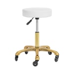 Justerbar rullpall på hjul, medicinsk skönhetssalong spa rund snurrstol med SGS-luftstång och guld 5 klor, höjd 48–65 cm (färg: vit)