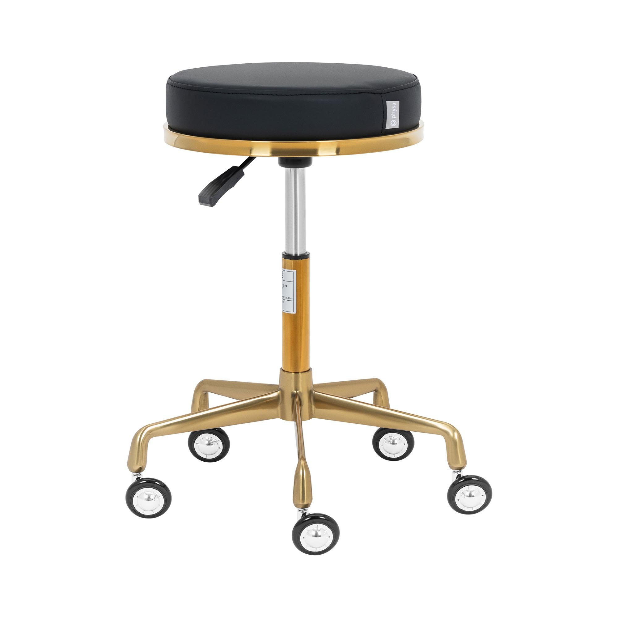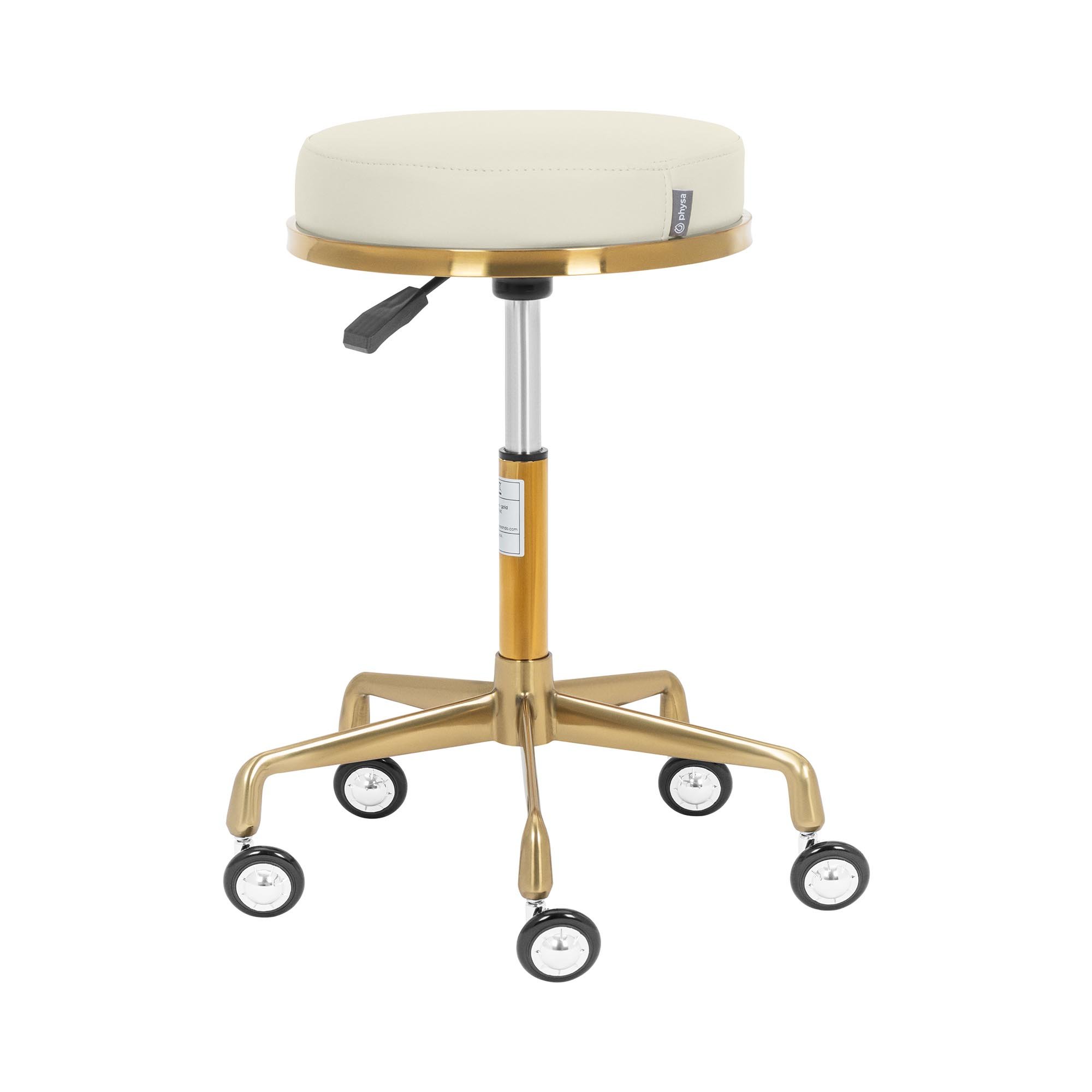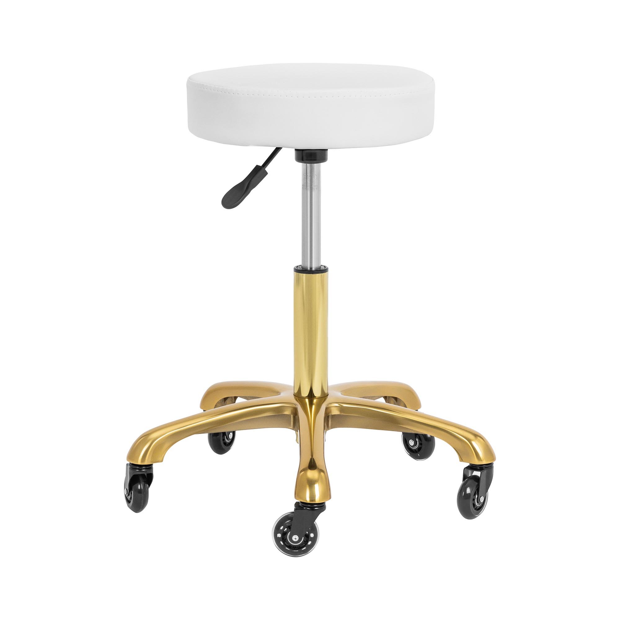 Justerbar rullpall på hjul, medicinsk skönhetssalong spa rund snurrstol med SGS-luftstång och guld 5 klor, höjd 48–65 cm (färg: vit)
