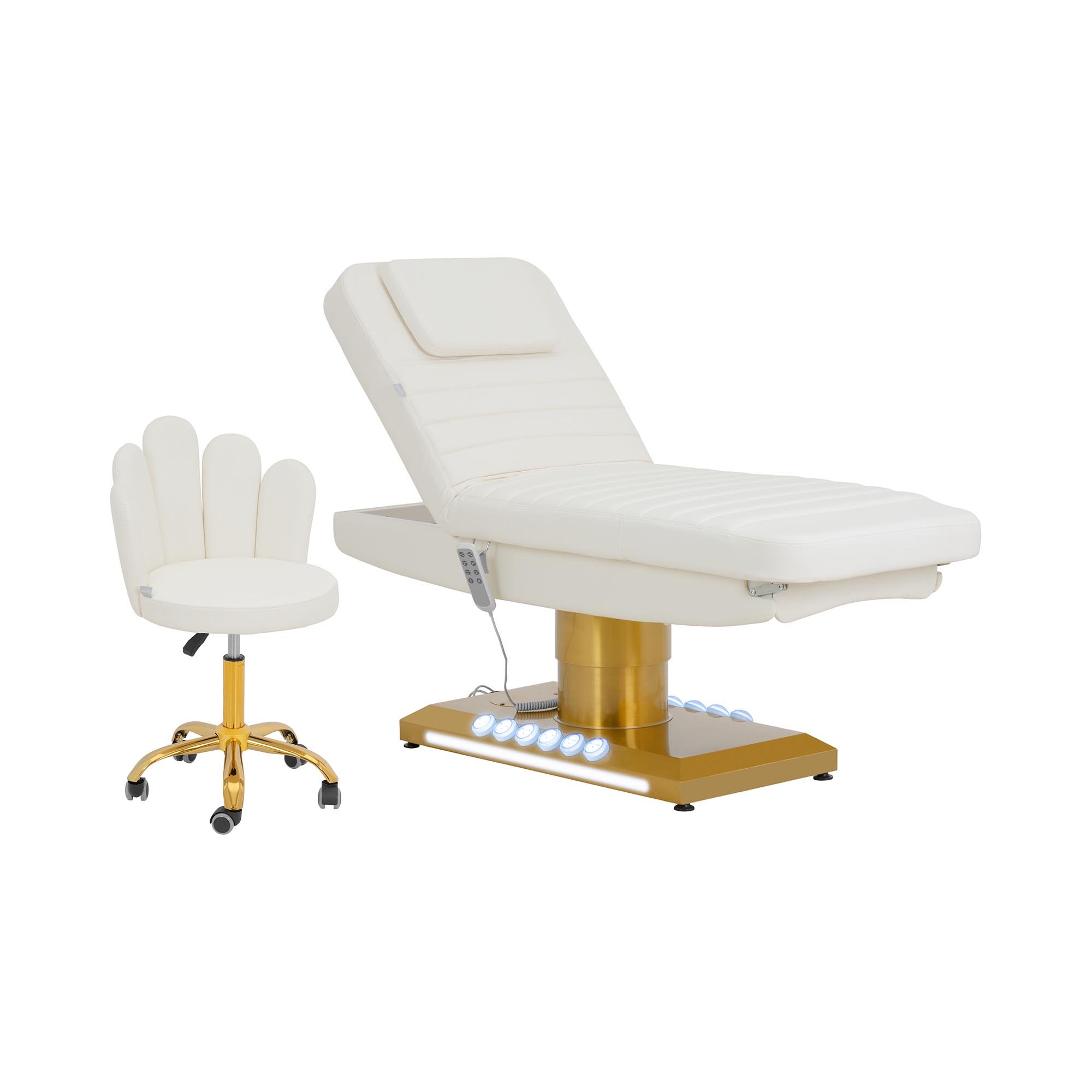 physa Behandlingsbänk med rullpall - elektrisk 3 motorer 300 W 188 x 70 59 80 cm 200 kg vit/guld