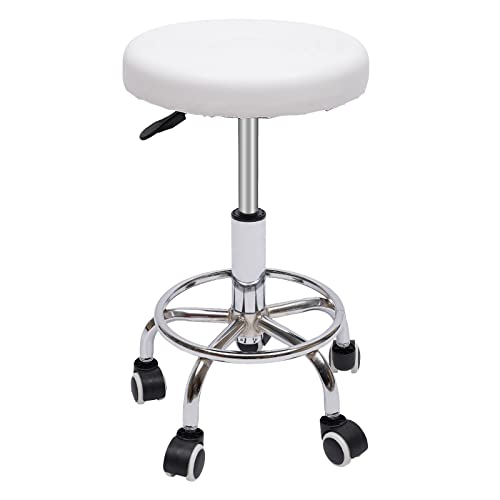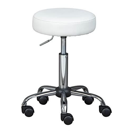 UESUENYENS Rund rullpall, 44–57 cm höjdjusterbar pall med hjul, kontorspall, sitt- och ståppall, för spa salonger massage (vit)