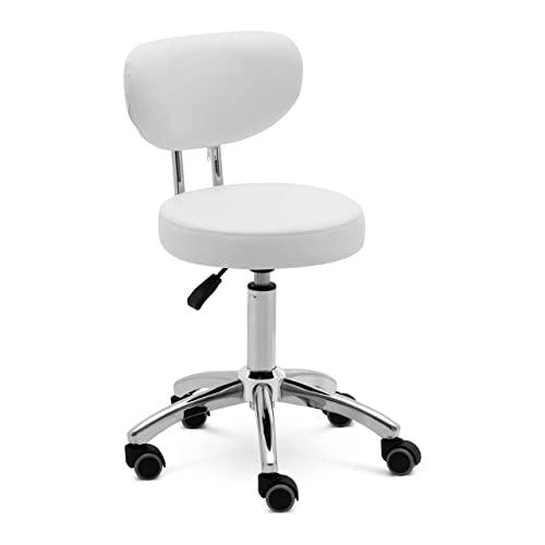 Yaheetech Rullpall snurrpall arbetspall praktikpall snurrstol kontorspall med hjul massage salong, av konstläder vit