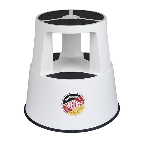 WEDO Rullpall Super Step av okrossbar plast – rullbar elefantfot stegstol, TÜV GS-testad, tillverkad i Tyskland, halkfri – höjd ca 43 cm, lastkapacitet 150 kg, (vit)