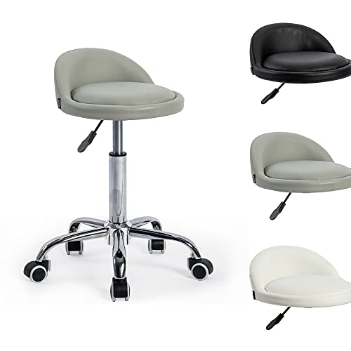 WKWKER Ergonomisk rullpall PU-läder pall på hjul svängbar höjd justerbar sittpall stol för kök ritning salong labb kontor massagepall (grå)