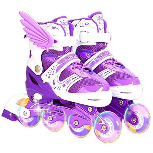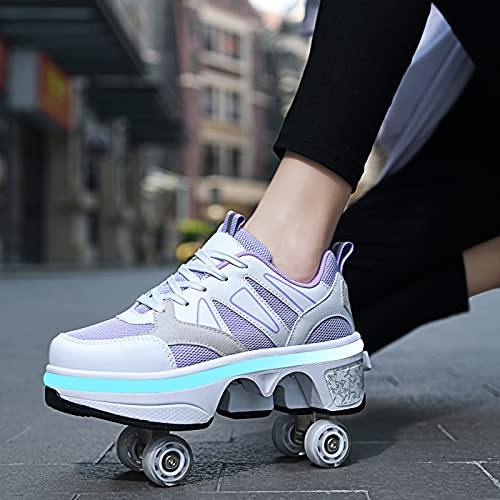 YXHUI Deformation rullskor skridskor med dubbelradig deformerande hjul automatisk och 7 färger växlande ljus bar skridskor vuxna barn, lila-EU 37/UK4