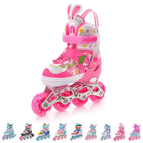 Rullskor, för barn, justerbara, storlek 26–37, med 6 st. skydd och lysande LED-hjul, för flickor, 1 par