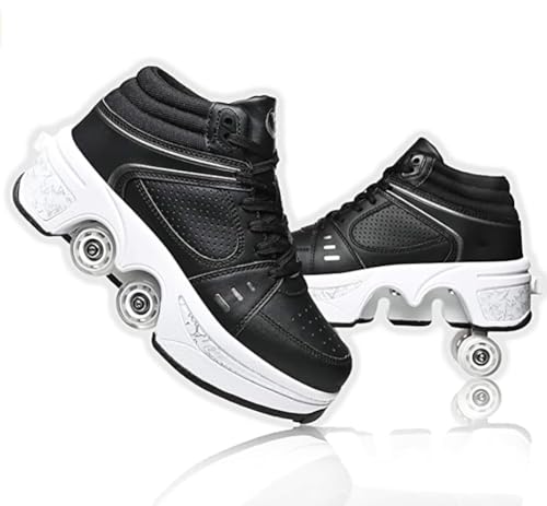 XRDSHY skor med hjul för barn, 4 hjul, skateboardskor, sportskor, pojkar, flickor, 2 i 1, multifunktionella rullskor, utomhuslöparskor, svart, 36 EU