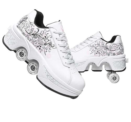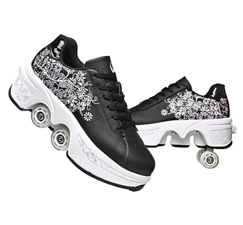 JinFugron skoter, skor med rullskridskor för flickor, män, skateboardskor bekväma och ventilerande fyrhjulingsskridskor justerbara rullskridskor med dolda hjul sneakers