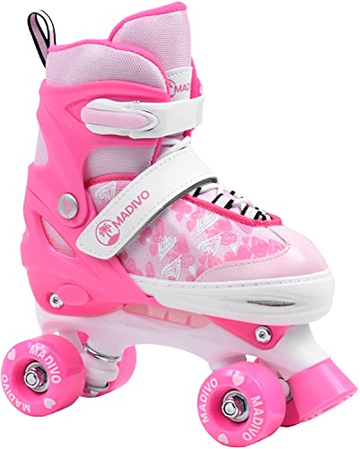 MADIVO Love barn flickor rullskridskor justerbar | Perfekt för barn och tonåringar | Justerbar storlek, rullskridskor | vit/rosa | Storlekar: 30–33, 34–37 (30–33)