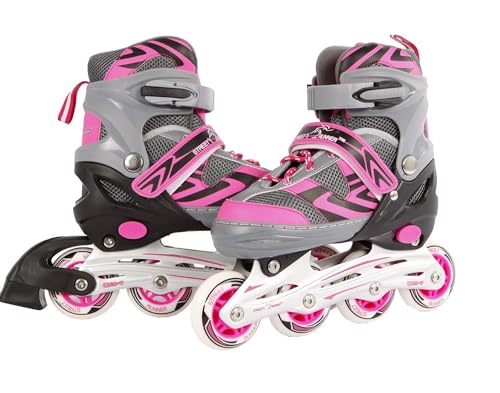 Tante Tina Inliner för barn – barn Inlines justerbar med lysande hjul – barninlines rullskridskor storlek justerbar i 4 storlekar – rosa M (33–37
