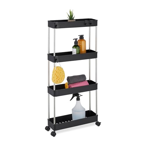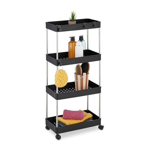 Relaxdays nischvagn, 4 våningar, med hjul, kök, badrum, rullvagn, 88 x 41,5 x 14,5 cm, plast, rostfritt stål, svart