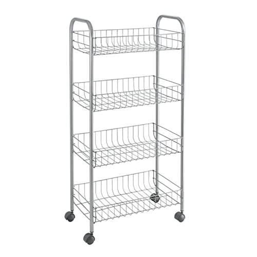 Metaltex Ascona rullvagn med 4 nivåer – multifunktionell förvaringsvagn för hem inklusive kök, badrum, kontor och garage – polytherm silver, 42 x 23 x 84 centimeter