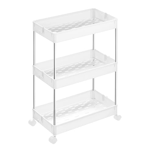 SONGMICS Rullvagn, rullhylla, 3 nivåer, utrymmesbesparande, för badrum, kök, kontor, 40 x 22 x 60 cm, vit KSC009W01