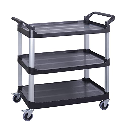 GOPLUS 3-stegs serveringsvagn av plast, rullvagn med 3 hyllor och handtag, förvaringsvagn för kök, lager, 103 x 49 x 98 cm, svart