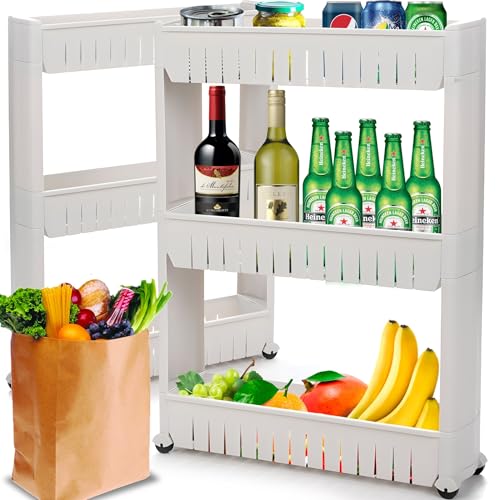 TMXKOOK Rullvagn med 3/4 nivåer, organiseringshylla på hjul, drycker, böcker förvaringsvagn för kontor, kök, sovrum, badrum, tvätt och byråer