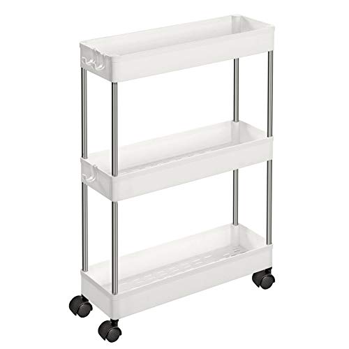 Retoo Rullvagn med 3 nivåer, köksvagn, plast, smal, universalvagn, nischhylla på hjul, platsbesparande badrumshylla och kökshylla, hylla på hjul för kök, kontor, badrum, 71 x 54 x 12 cm, vit