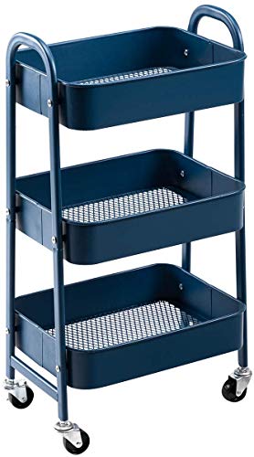 Doeworks Förvaringsvagn med 3 nivåer, rullvagn, vagn, metall, verktygshyllor med hjul och handtag, för kök, smink, badrum, kontor, marinblå