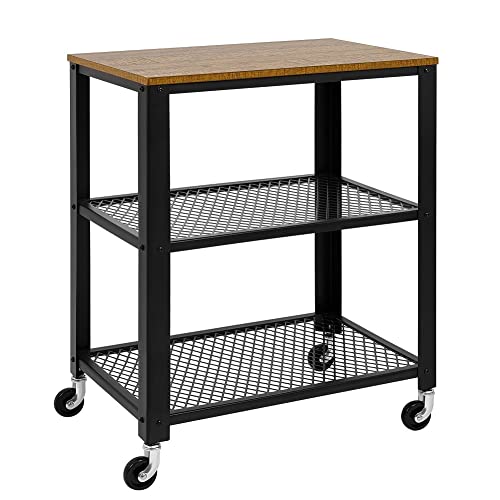 Meerveil serveringsvagn, köksvagn, rullvagn på 4 hjul och 3 hyllor för kök och vardagsrum, stålram industriell design, 60 x 40 x 76,5 cm, brun