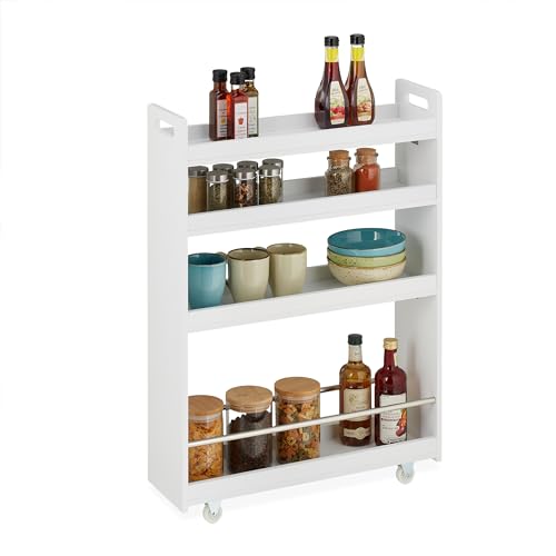 Relaxdays nischvagn, 4 hyllor, smal nischhylla kök & badrum, HBT: 83,5 x 18 x 59,5 cm, rullvagn MDF, vit, 1 styck
