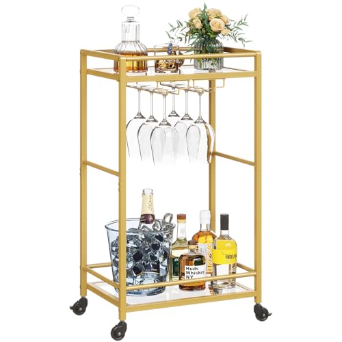 Lifewit Dryckesvagn, barvagn med låsbara hjul, rullbar serveringsvagn med speglade hyllor i 2 plan, vinvagn barvagnar för hemmet med vinställ, cocktail öl rullvagn för kök vardagsrum, Guld