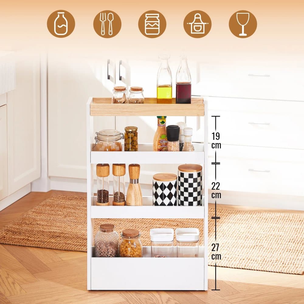 Smal rullvagn för nischer - NSR12-W Rullvagn - Bredd 15 cm - Med 3 lådor - Mått 80×50×15 cm - För nischer & hörn - Vit