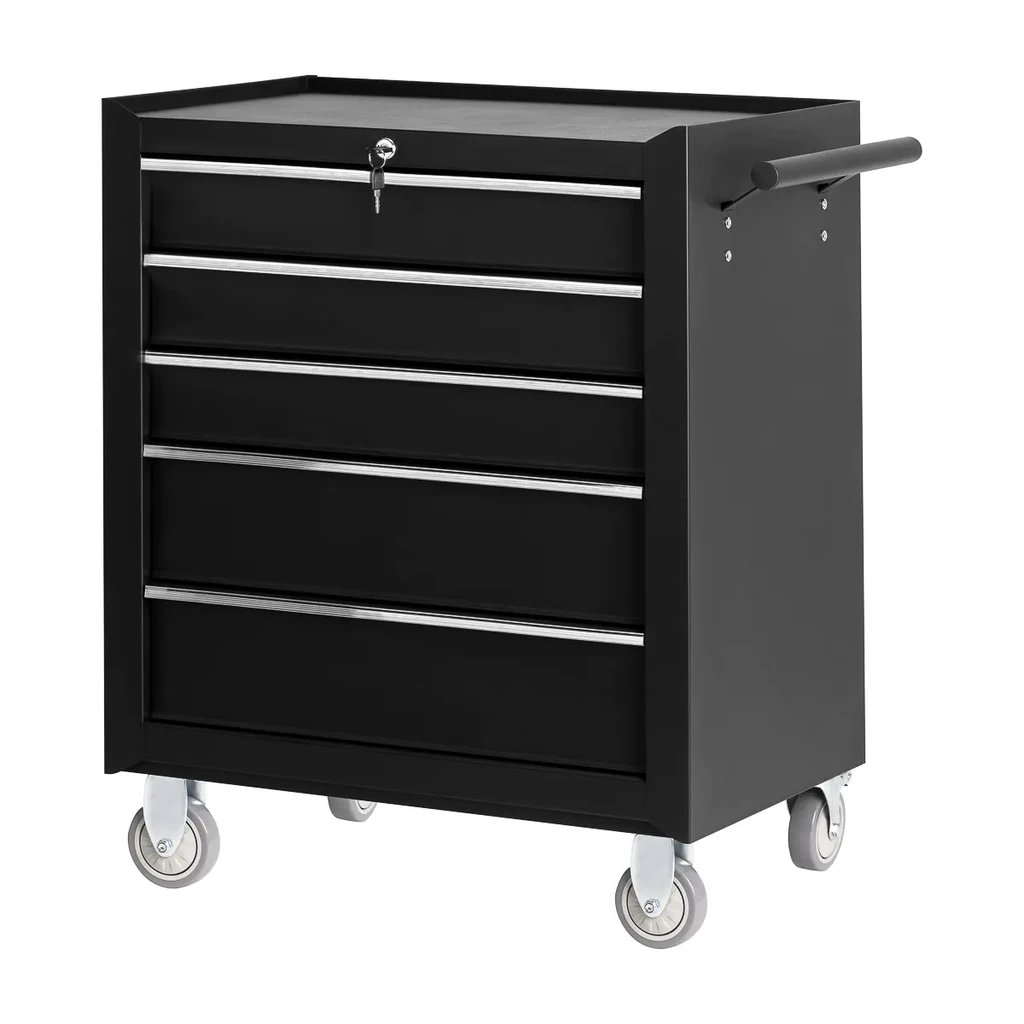pro.tec Verkstadsvagn med 5 lådor, låsbar verktygsvagn med 4 hjul, rullvagn, stål, svart